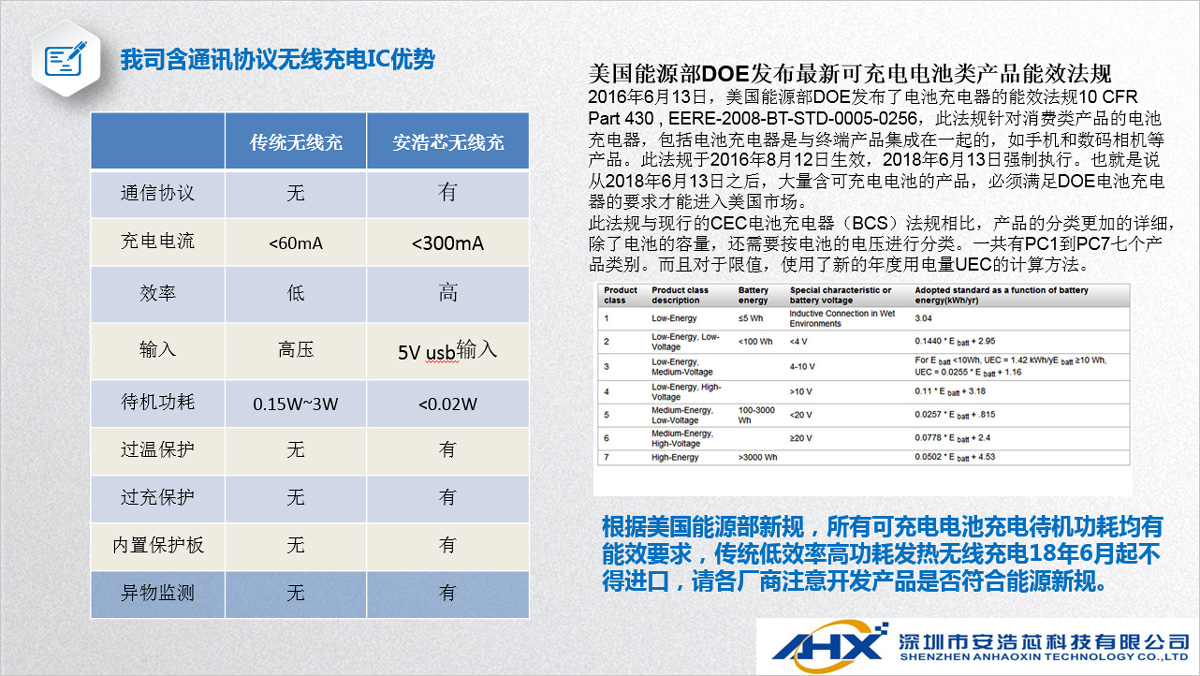 我司無(wú)線(xiàn)充電IC方案具有體高、成本優(yōu)勢(shì)明顯、應(yīng)用電路簡(jiǎn)單等特點(diǎn),發(fā)射和接收IC集成度高,帶有通訊協(xié)議,具有異物識(shí)別、過(guò)充保護(hù)、過(guò)放保護(hù)、短路保護(hù)等功能。